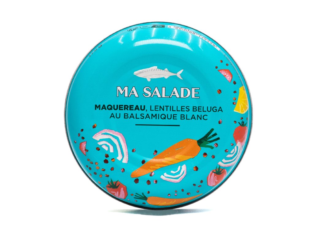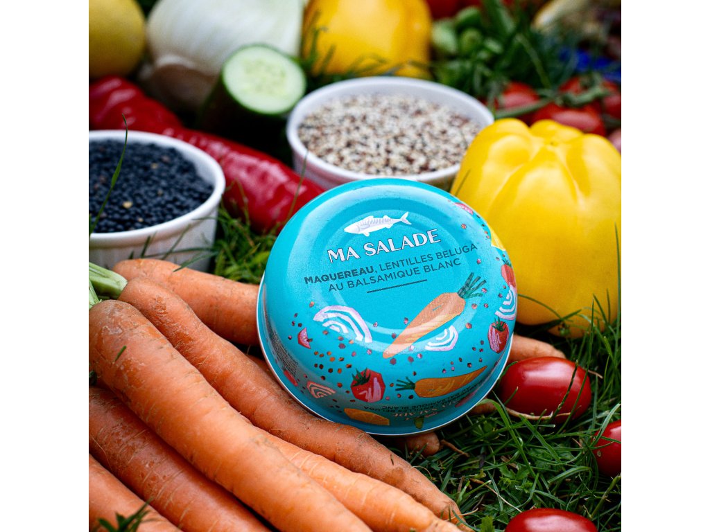 - Složení: Makrela obecná (scomber scombrus) (25%), cibule (18%), čočka Beluga (13%), rajčata (13%), mrkev (11%), voda, olej z vlašských ořechů, citronová šťáva (2%), bílý balzamikový ocet (1,5%) (vinný ocet (siřičitany), hroznový mošt (siřičitany)), bylinky, sůl, hořčičná semínka, bramborový škrob, koření.