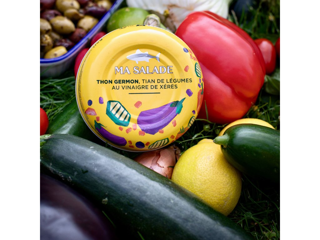 - Složení: Tuňák křídlatý (thunnus alalunga) (25%), smažený lilek (18%), grilovaná cuketa 16%), smažené červené papriky (15%), rajčata (14%), smažená cibule (3%), extra panenský olivový olej, bramborový škrob, černé olivy (1,4%), sherry ocet (1%), sůl, bylinky, koření.