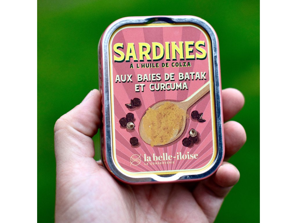 - Složení: Sardinka obecná (Sardina pilchardus), řepkový olej (19 %), citronová šťáva, voda, koření včetně kurkumy (0,1 %) a bobule pepře Batak (0,1 %), bramborový škrob, jedlá sůl.